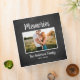 Family Memories/scrapbook album with white handwritten script and your family photo on a black chalkboard background. Text says, "Memories." Personalize it by adding your family name and established/wedding date.