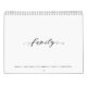 Send a beautiful personalized gift to your family that they'll cherish. Special personalized family photo collage calendar to display your own special family photos and memories. The front cover design features a simple 8 photo collage grid design with "Family" designed in a beautiful handwritten black script style. Each photo is framed with a simple gold-colored frame. Customize with family members' names. Each month features a single full-size image with the month written in elegant black calligraphy displayed slightly over each photo.