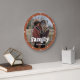 This colorful and stylish clock features your favorite personal family photo, with trendy white typography and a spot to add your name. The border of the clock is a boho terracotta color.