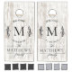 Family Monogram and Name Laurel Wood Cornhole Set - Cornhole Set features distressed wood with your monogram and family name. Our high quality template makes it effortless for you to customize your custom cornhole set. If you would like to customize it further, please use the "customize further" option.