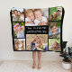 Family Monogram Name 8 Photo Collage Black Fleece Blanket