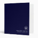 Simple recipe binder features a minimal design in a navy blue and white color palette. Custom family name presented in the lower right-hand corner in stylish simple font with a complimentary minimal monogram medallion. A personalized congratulatory wedding message with love message in elegant script on the back. A simple family recipe binder makes for the perfect personalized wedding gift for the bride and groom.