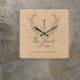 Custom monogram and name with family established year and place elegant chic farmhouse style beige burlap wall clock. +++++++ A modern keepsake gift for weddings, anniversaries, housewarmings, Thanksgiving, Christmas holidays.