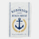 Personalize your home with a stylish nautical themed garden flag. Simply enter your family name, beach house (or lake house cabin etc), established date and location or other desired text as needed. Easily customizable. Features include a custom designed vintage boat anchor with gold style laurel leaves and star, rope stripes in classic navy blue on white or easily adjust the primary color to match your current decor or theme.