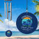 Family Name Beach House Summer Palm Trees Sunset Retro Style Navy Blue Wind Chime. Personalize with your family name, location and more.