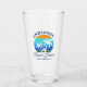 Family Name Beach House Summer Palm Trees Sunset Retro Style Drinking Glass. Personalize with your family name, location and more. Navy Blue Text or choose your color.