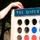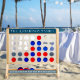 Family Name, black and white modish retro navy blue and white accent pattern, Fast Four Lawn Game.