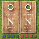 Personalized rustic wooden barrel background cornhole set with your own custom family name, monogram and established date.