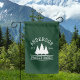 Family Name Cabin Forest Green with Pine Trees Garden Flag