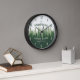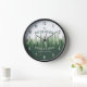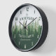 A beautiful, rustic themed wall clock, featuring your personalized family name and cabin, lodge or other desired text and it's location. This custom design features artwork of a pine tree forest silhouette in shades of forest and hunter green. Feel free to visit my designer store to see more items and designs like this. Thanks.