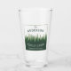Beautiful, rustic themed glass beverage cups with your personalized family name and cabin, lodge or other desired text and it's location. This custom design features artwork of a pine tree forest silhouette in shades of forest and hunter green. Feel free to visit my designer store to see more items and designs like this. Thanks.