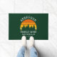 Rustic Pine Trees Summer Retro Sunset Family Name Cabin Forest Green Door Mat. Personalize with your family name, location, year or date and more.