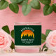 Rustic Pine Trees Summer Retro Sunset Family Name Cabin Forest Green Scented Candle. Personalize with your family name, location, year or date and more.