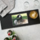 Help prevent drink spills and water rings with this trendy bar mat that features the wildlife photo image of a resting Canada Goose along with family name printed in white, stylized script. Personalize your bar mat by editing and replacing family name with your own.