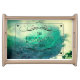 This is a well made, sturdy wooden tray with a flawless black finish and lovely map on the tray surface. It is both vintage & modern at the same time. Looks exactly like the photo; does not disappoint. So nice to find something of quality individually made and not the mass-produced 'shabby chic' merchandise seen in stores. I am so pleased to be able to give this to my college-age niece for her birthday. This can be used as a tray to hold jewelry or toiletries, or hung on the wall as art. The map surface is sealed (it is slightly shiny) so would be moisture resistant. It is well worth the asking price but I was able to apply a sale code as well. Very happy with my purchase. Map is crisp & clear and sealed with a water-resitant finish.