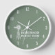 A beautiful, modern rustic themed wall clock, featuring your name and "FAMILY FARM", Ranch, Cottage or other desired text along with its established date and location. This custom, unique design features rustic typography and a vintage homestead style windmill in an elegant white silhouette. The primary color, sage green is easily customizable to match your current decor. To see more designs like this, feel free to visit my store here at "Zazzle.com/Rustic_Charm". Thanks.