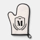 This trendy elegant monogrammed oven mitt should definitely be part of your kitchen. It features a heraldry award badge crest, a laurel wreath with a crown inside. Add your family name initial letter to the monogram and it'll change to your chosen alphabet.