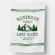 Personalize your family lake house with a beautiful, rustic themed, flag, featuring your family name, lake house location and established date. This unique, custom design features a lake, trees and mountains emblem in stylish forest green. A great addition to your vacation home decor. Feel free to visit my designer store to see more items and designs like this. Thanks.
