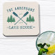 Family Name Lake House Rustic Oars Pine Trees Beverage Coaster