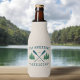 Beautiful, rustic themed bottle coolers, featuring your family name and lake house, cabin, cottage or other desired text and its established date, all in rustic style typography. This unique, custom design features teal blue boat oars, paddles and pine trees in soft green. The designs cream base color is easily customizable to match your current decor. To see more designs like this, feel free to visit my store here at "Zazzle.com/Rustic_Charm". Thanks.