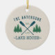 Family Name Lake House Rustic Oars Pine Trees Ceramic Ornament