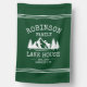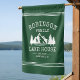 Personalize your family lake house with a beautiful, rustic themed, flag, featuring your family name, lake house location and established date. This unique, custom design features a lake, trees and mountains emblem on stylish forest green. A great addition to your vacation home decor. Feel free to visit my designer store to see more items and designs like this. Thanks.
