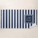 Family Name Monogram Navy Blue White Stripe Beach Towel
