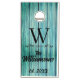 On this stylish cornhole set are teal blue rustic wood planks with a letter and family name and year that you can customize it making it uniquely your own. Rustic farmhouse vibes.