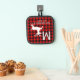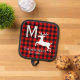 Bring the serene beauty of the wilderness into your kitchen with this pot holder, featuring a rustic deer silhouette, your family’s monogram, and the date of establishment of your cabin or cottage on a traditional vintage red and black Buffalo Lumberjack plaid pattern design. This kitchen essential is a harmonious blend of nature’s tranquility and personal charm; it’s also a piece of art that celebrates your love for the outdoors and family heritage with every dish too hot to handle without a potholder!