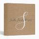 Family Name Monogram White Script Camel Faux Linen 3 Ring Binder