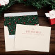 These stylish pre-addressed envelopes highlight your last name on the back flap (in red), with your address in one line underneath. The inside contains a hand drawn Christmas floral pattern in red, green, and ivory over a dark green background.
