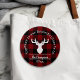 The product design features a silhouette of a deer on a classic red and black buffalo plaid pattern. Combined with your own personalized text, this composition makes a rustic, modern, and unique button for Thanksgiving, Christmas holiday, family reunion, or any other special gatherings!