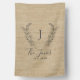 Custom monogrammed family name and year established elegant chic rustic country vintage beige burlap personalized welcome house flag. +++++++ A modern gift for housewarming, weddings, newlyweds, anniversaries, Thanksgiving, Christmas, or any other occasion.