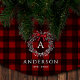 Family Name Rustic Holiday Wreath Buffalo Plaid Brushed Polyester Tree Skirt