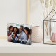 Create a sweet family keepsake with this modern freestanding acrylic photo block. Add your favorite horizontal or landscape oriented photo with your family name overlaid in white handwritten style modern calligraphy lettering.