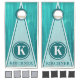 Family Name Teal Wood Triangle Stripes Monogram Cornhole Set