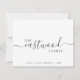 This simple family name typography notecard includes your last name in a pretty modern script signature style and your individual first names below. Simple modern elegance.