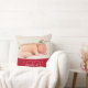 “Our First Christmas as a family of 3.” A playful visual of champagne gold snowflakes overlaying the photo of your choice and white handwritten script typography with customized year over red, helps you usher in Christmas and New Year. On the back, additional champagne gold snowflakes and personalized handwritten typography of baby’s name and birth date overlay a red background. Feel the warmth and joy of the holiday season whenever you relax with this stylish and modern personalized photo keepsake pillow. Perfect gift for the newly proud parents!