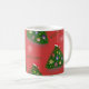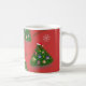 Christmas mug features Christmas tree with Family photos on it. Photos can be customized as well as family name and background color.