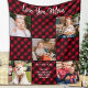 Family Personalized Red Plaid 5 Photo Collage Fleece Blanket