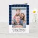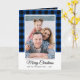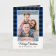 Family Photo Blue Buffalo Plaid Merry Christmas Card