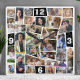 This cool photo-montage square clock has a mod, cut-out look with 29 of your custom photos forming a geometric collage. It also includes the numbers 12, 3, 6, and 9 in white on black (tip: you can also customize the color of the numbers and the black shapes). Just use the easy templates to upload your pictures. DESIGN TIPS: For this design, your photos will be cropped to fit the geometric shapes. What you see on screen is what will print, so play around with the templates to see which photo works best in each spot. If you need assistance, contact the designer (PictureCollage).