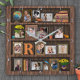 You won't find a more unique and beautiful way to display your family or wedding memories than this photo collage. This gorgeous design includes 15 of your personalized pictures, made to look like they are sitting in frames on an antique wood bookcase. Your photos are surrounded by images of vintage books and other decor, including a globe, a clock, animal figurines, flowers, and more. Your monogram sits on the middle shelf. The colors are mostly brown, orange, blue, and yellow. HOW TO PERSONALIZE: Use the simple templates. Just follow the instructions and your photos will fill the frames. Tip: Any photo shape will fill each frame (so if you upload a square in the place of a vertical, it will still fill the frame, but some will be cut off). For help, contact PictureCollage.