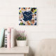 Family Photo Collage Chic Blue And White Square Wall Clock
