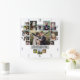 Display your family or wedding memories with this beautiful photo collage clock in white and gray with your pictures in the shape of a heart. This cute design includes room for 17 photographs: 9 horizontal, 2 vertical, and 6 Instagram-style square. Your photos will automatically adjust to make the heart shape (for instance: if you upload a square photo instead of horizontal in the center, your photo will fill the horizontal shape). The design also includes your family name in elegant cursive. Use the simple templates to personalize. "Customize further" to make more detailed changes, such as changing the font or text size. Contact PictureCollage for assistance.