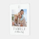 This simple and elegant boho-inspired square Christmas ornament is a beautiful way to celebrate family during the holidays. The design features space for one photo on the front and one photo on the back, making it a double-sided keepsake to showcase your favorite memories. "Family" is displayed underneath the front photo in a classic serif font, with room in soft script to add your family name, first names, or a short message.