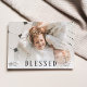 Share gratitude in style with this elegant Blessed Thanksgiving Photo Card. Featuring a modern minimalist layout with a bold "BLESSED" headline and space for your favorite family photo, this card is the perfect way to send warm holiday wishes. Personalize with your family name, custom message, and cherished picture to create a unique keepsake. Ideal for Thanksgiving gatherings, Friendsgiving celebrations, or simply sending love and thanks to friends and relatives. Printed on premium paper with a sophisticated finish, this photo card is a timeless way to spread joy this holiday season.