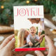 FAMILY PHOTO modern elegant typography JOYFUL red Holiday Card