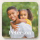 Display your favorite family photo on this personalized beverage coaster with a custom last name monogram in classic serif type. The rounded corner design and durable hard plastic material make it a lasting keepsake for everyday use. Perfect as a gift for grandparents, Mother's Day, Father's Day, or any celebration of family. Upload your own photo and customize the name.