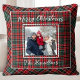 Family Photo Rustic Christmas Plaid Throw Pillow